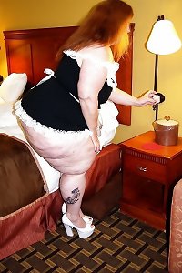 nice elder woman with cellulite thighs.